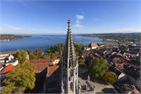 Nach einer gemütlichen Zugfahrt erreichen Sie mittags Bregenz die Hauptstadt Vorarlbergs. Nach Ankunft Mittagessen in Bregenz und anschließend geht es weiter nach Ravensburg, wo Sie Ihre Reiseleitung durch die „Stadt der Türme und Tore“ führt. Die lebendige Altstadt mit Kulturgenuss und ehemals Freie Reichsstadt Ravensburg, mitten in der Ferienregion Bodensee und Allgäu gelegen, ist die wirtschaftliche Mitte der Region. Der zentral gelegene Marienplatz ist der ideale Ausgangspunkt, um die Stadt zu erkunden. Dort und in den angrenzenden Straßen und Gassen sowie in der Bachstraße, wo der Stadtbach offen fließt, oder in der liebevoll sanierten Marktstraße, herrscht reges Leben.