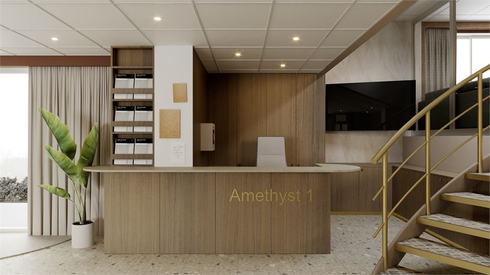 MS Amethyst 1 bietet 4 Passagierdecks, ein lichtdurchflutetes Panorama-Restaurant (eine Tischzeit), großzügige Aussichtslounge mit Bar und Tanzfläche, Foyer mit Rezeption (Safe). Boutique, Ausflugsbüro und Bibliothek mit Leseecke, Massage, Wäschereiservice.